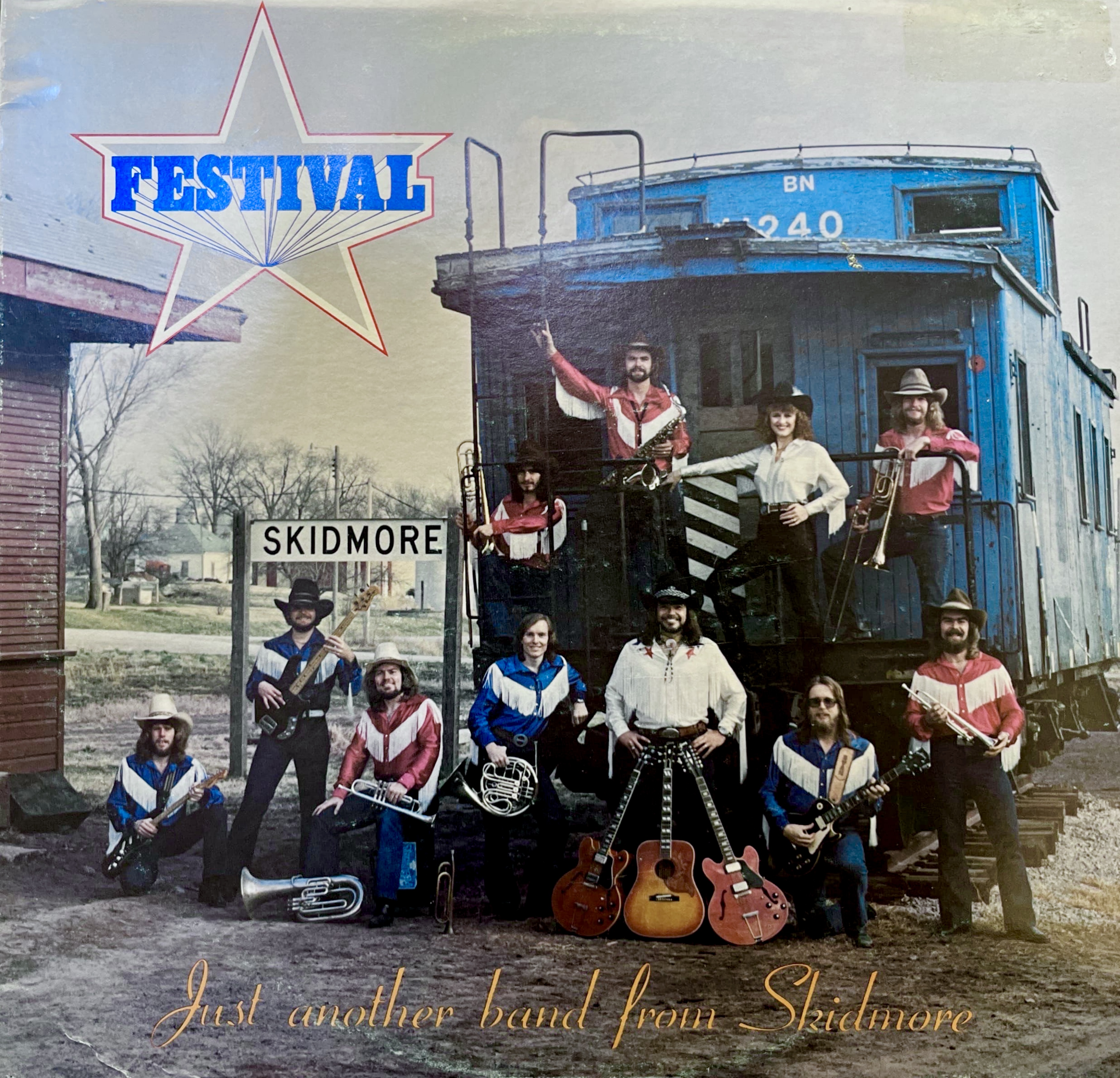 ![]() | Festival - Just Another Band From SkidmoreCountry-Rock | Missouri | 19811981 LP from Missouri band Festival released on Max Stout Records. The band Festival began in 1973 and released a slew of albums on the Max Stout Records label throughout the 70s and 80s. According to the liner notes this LP was their their third full-length outing and is a tribute to their hometown of Skidmore, Missouri. The "Festival Family" was a non-religious communal living 'extended family' that resided on the Festival Farm outside of Skidmore. The liner notes are full of nicknames for the band, calling them "The World's Funkiest Cowboy Band", "The Premier Showband in the Midwest", "The Big Band From The Prairie", and "The Brass Band From The Grassland". Over the years the band shifted from a light-hearted stage show to a more politically-charged group, mainly focusing on the issue of America's treatment of veterans. The band more or less dissolved in the early 2000s after years of core members retiring from touring or outright leaving the band. David Struve from Northwest Missouri State University wrote his master's thesis on the group, titled 'Festival: Community or Commune?'. You can Google the title and read the 80-page work for a full history of the band! You can also find some additional information and photos on Britt Small's website brittsmall.com Players on the LP include Britt Small, Mark Reinig, Beck Reinig, Ray Roth, Stan Funston, Dann Hohn, Don Struve, Les Wetzel, Keith Wetzel, Russ Wetzel, and Curt Pottratz. |