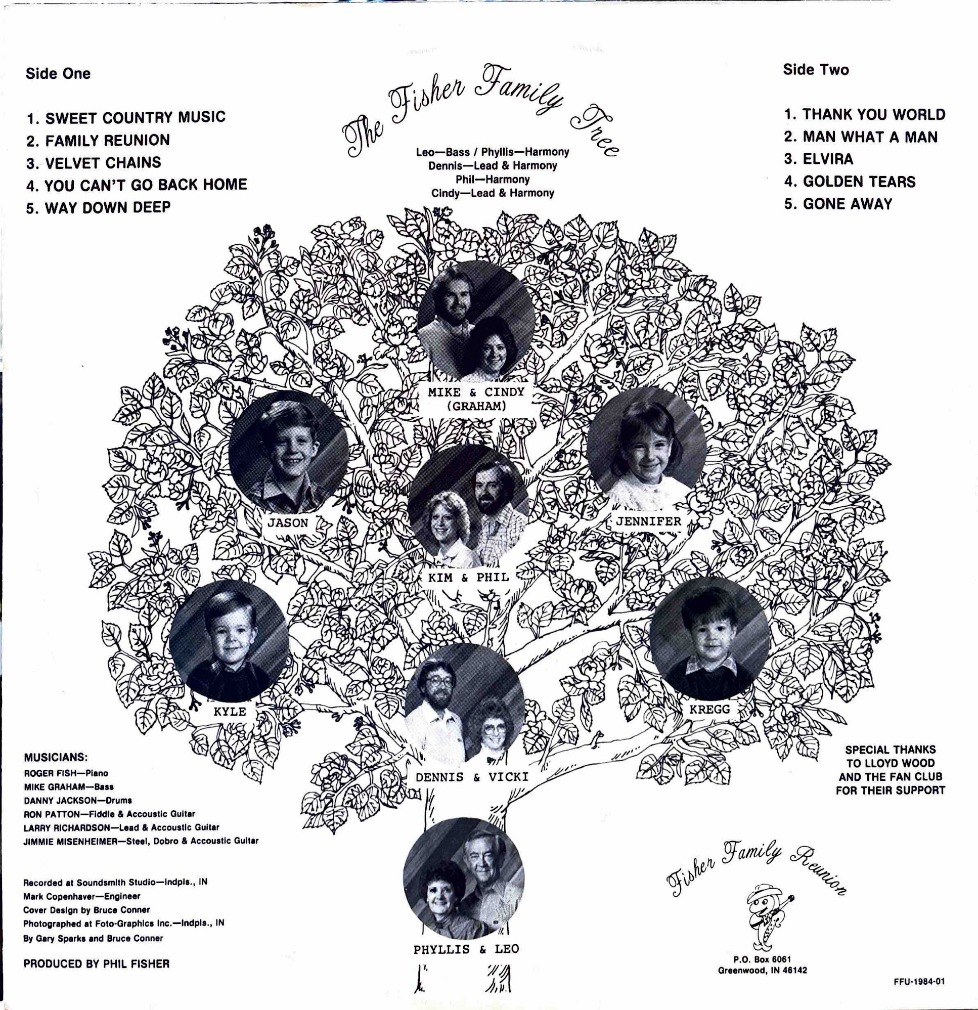 ![]() ![]() | Fisher Family Reunion - Country Feast With The Fisher Family ReunionCountry | Indiana | 19841984 LP by Greenwood, Indiana band Fisher Family Reunion. The Fisher Family Reunion consisted of parents Leo and Phyllis along with their children Dennis, Phil, and Cindy. Phyllis and Leo were in the group The Country Travelers, who released a few LPs in the 1970s. They were regular performers at The Little Nashville Opry. They performed on The Lloyd Wood show with their children. Players on the LP include Roger Fish on piano, Mike Graham on bass, Danny Jackson on drums, Ron Patton on fiddle/acoustic guitar, Larry Richardson on lead/acoustic guitar, and Jimmie Misenheimer on steel/dobro/acoustic guitar. The LP was recorded at Soundsmith Studio in Indianapolis and was engineered by Mark Copenhaver.. The LP was produced by Phil Fisher. Leo passed away in 2012, Phyllis passed away in 2021. |