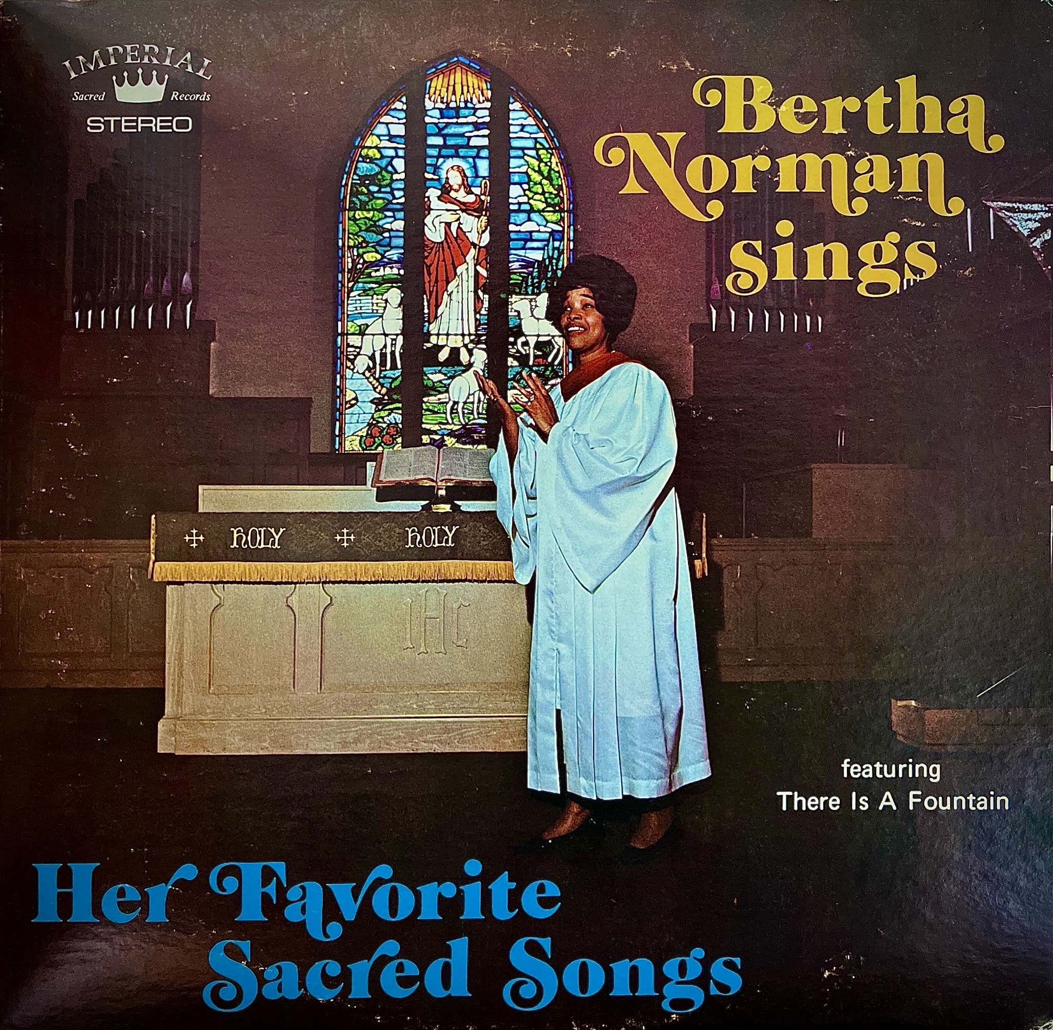 ![]() | Norman, Bertha - Sings Her Favorite Sacred SongsGospel | Indiana | 19721972 LP from Indiana gospel singer Bertha Norman, released on Imperial Sacred Records. Betha was from South Bend, Indiana and was the director of the gospel choir at St. John's Missionary Baptist Church. She attended the South Bend Conservatory of Music and traveled around the world performing at churches in Ireland, the U.K., and all across the United States. Bertha recorded at least 3 LPs, this being her third according to the liner notes. Other credits on the LP include M. Elisabeth Hesbin on organ, Virginia M. Spann on piano, and The Randy Martin Trio on brass and backing vocals. The LP was engineered by Graham H. McQueen and Roger Mann. It was recorded and produced at G&E Productions in Mishawaka, Indiana. From some articles I found online it appears that Bertha has passed away, but I do not know when. |
