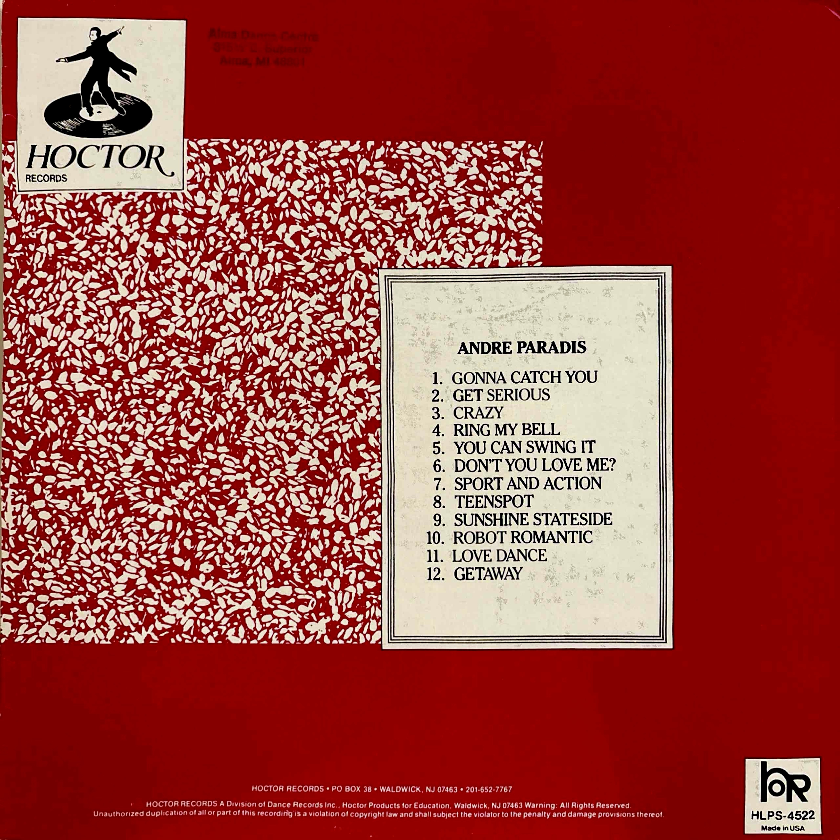 ![]() ![]() | Paradis, Andre - Andre's Hip-HopHip-Hop/House/Electronic | 1992This LP was meant to accompany hip-hop dance routines. Andre Paradis is a dancer, and as far as I can tell Andre Paradis didn't put out any other music - I'm assuming he is the one rapping on a few tracks, but I don't know for sure and I also don't know if he is also an instrumentalist. None of the instrumentalists or the female vocalist are credited on the LP. It looks like Paradis is now a realtionship coach based in Los Angeles. |