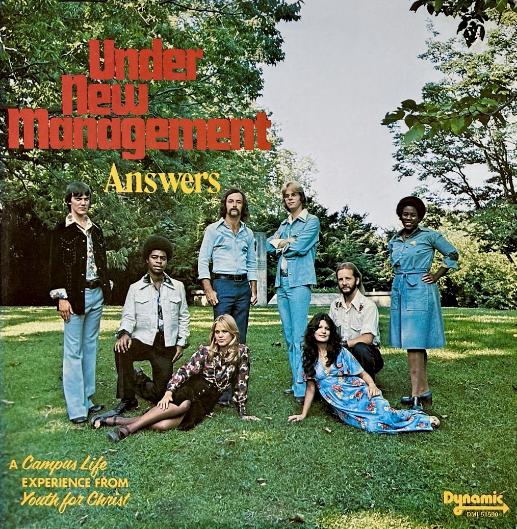 ![]() | Under New Management - AnswersChristian Pop/Rock | Indiana | 19751975 LP by Indiana Christian pop/rock band Under New Management, released on Dynamic Records. Under New Management released a handful of LPs in the 1970s. They formed in 1971 and traveled around the US performing at Youth For Christ events. Members of the group were Brenda Upshaw, Bonnie Burnes, Michelle DeMuit, Doug Birky, Joel Davidson, Dave Dillon, Mike Duke, and Jim Benton. This LP was recorded at Gilfoy Sound Studio in Bloomington, Indiana. Additional recordings were made at Pinebrook Studio in Alexandria, Indiana. The LP was produced and arranged by Stan Morse. |