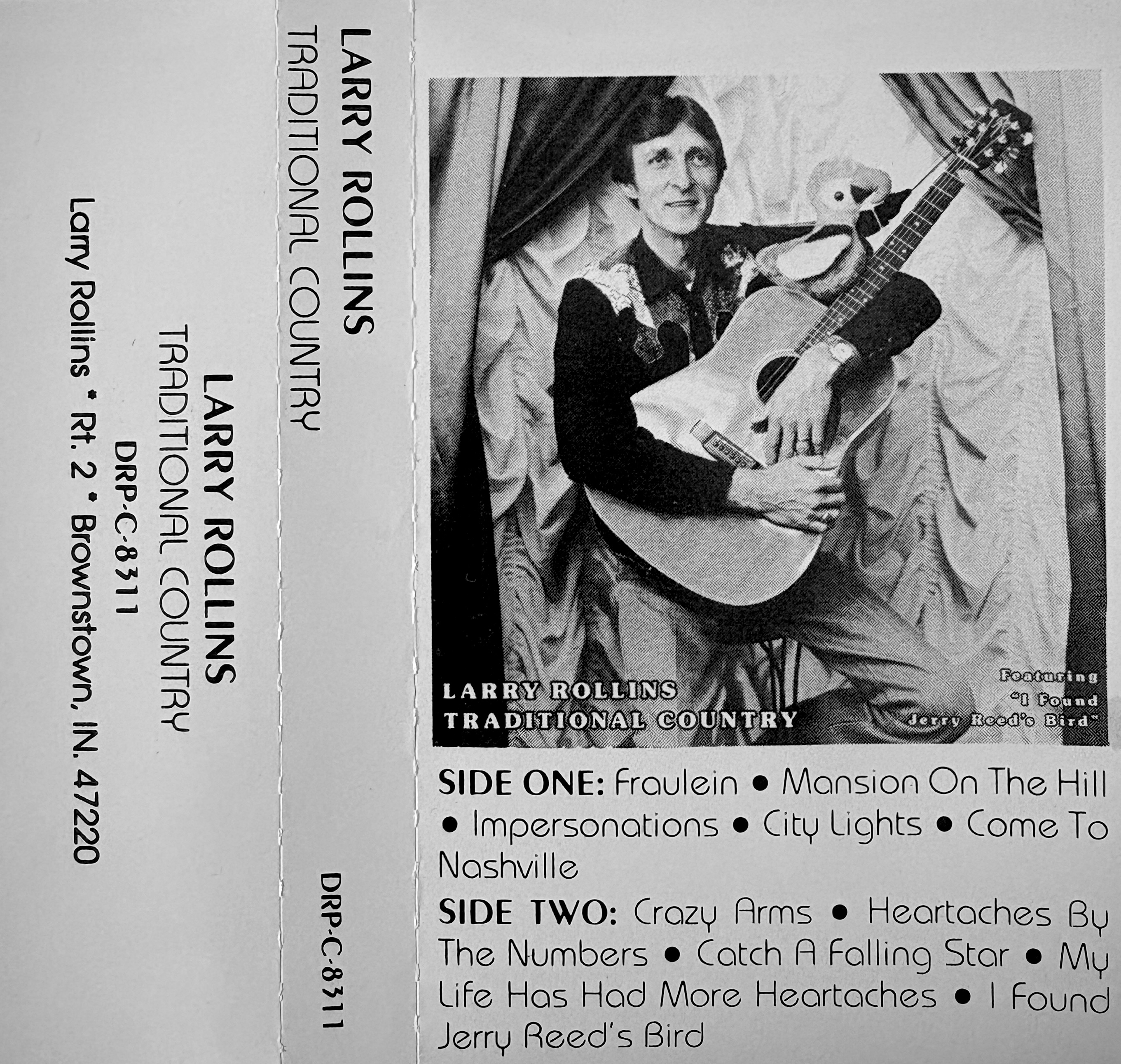 Rollins, Larry - Traditional CountryCountry | Indiana | 1970sDescription coming soon! Tracklist A1 Fraulein A2 Mansion On The Hill A3 Impersonations A4 City Lights A5 Come To Nashville B1 Crazy Arms B2 Heartaches By The Number B3 Catch A Falling Star B4 My Life Has Had More HeartAches B5 I Found Jerry Reed's Bird Listen on YouTube or The Internet Archive |